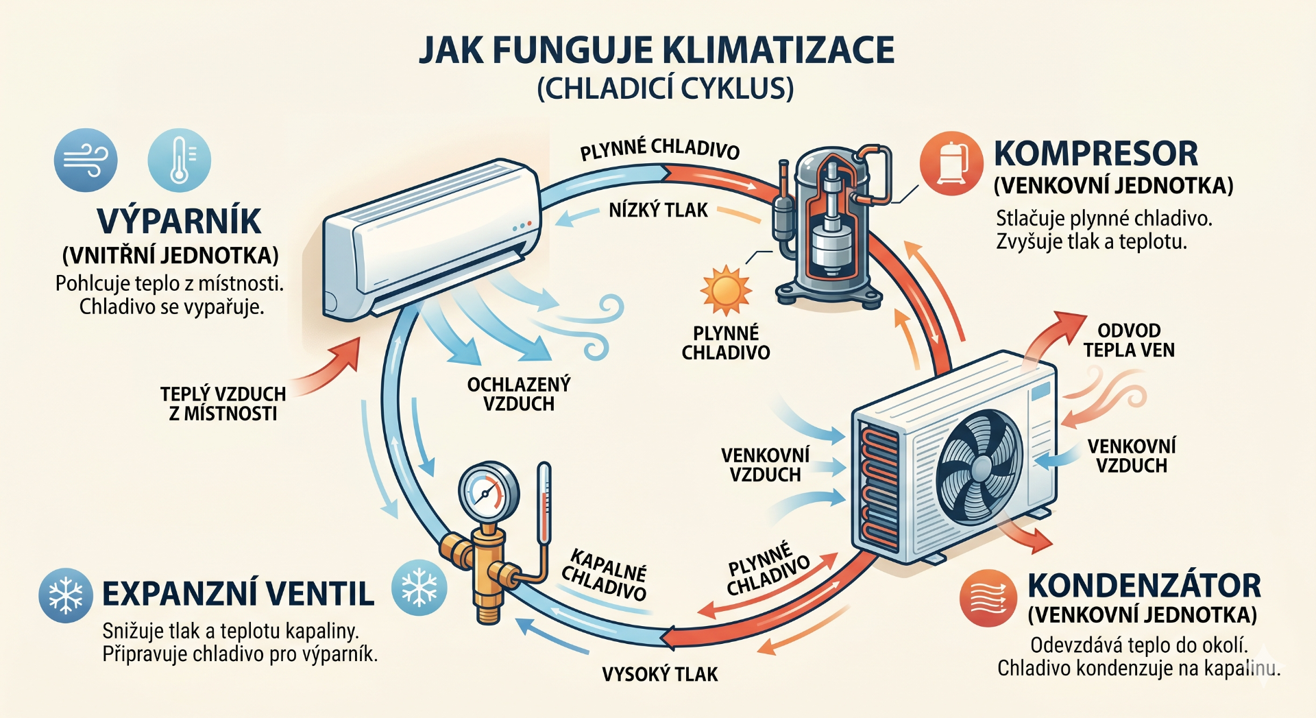 Klimatizace je pro mnohé z nás v horkých letních dnech nepostradatelným společníkem. Ačkoliv se může zdát, že do místnosti prostě "fouká chlad", realita je o něco zajímavější. Klimatizace totiž chlad nevyrábí – ona teplo odčerpává.