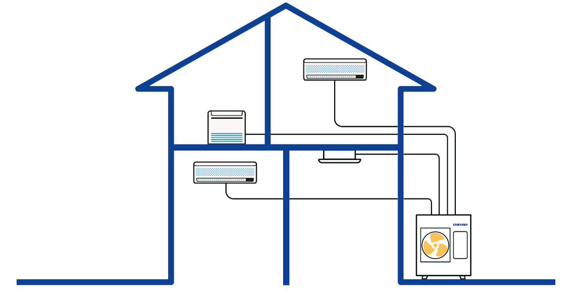 Jsou ideálním řešením pro chlazení či vytápění více místností (bytů, rodinných domů) najednou, přičemž šetří místo na fasádě a nabízejí nezávislé ovládání teploty v každé místnosti.